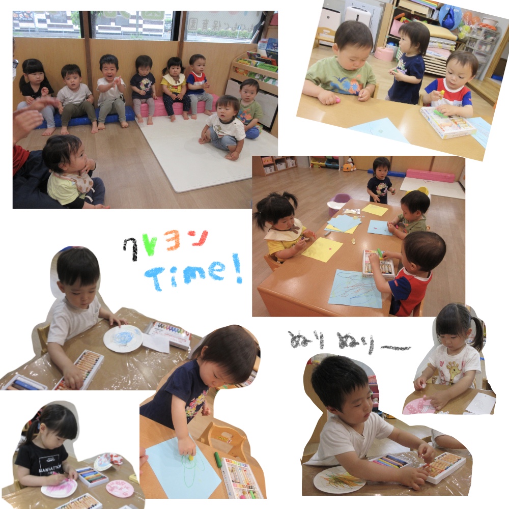 お部屋遊びでは、クレヨンを使って制作タイム☆