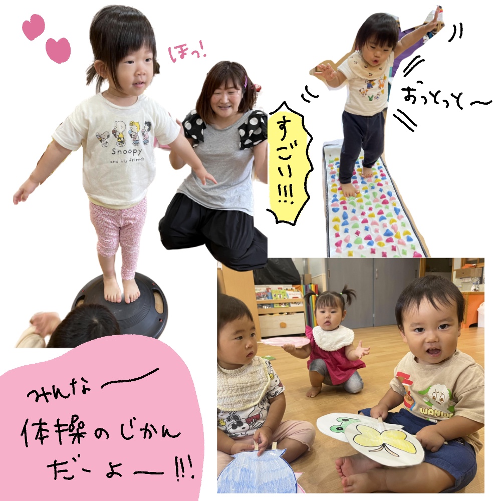 体操の時間では先生のお膝でストレッチをしたりカエルになって飛び跳ねたり楽しそうに参加する子もいたら、サーキット遊びではジャングルジムに夢中になる子も☆