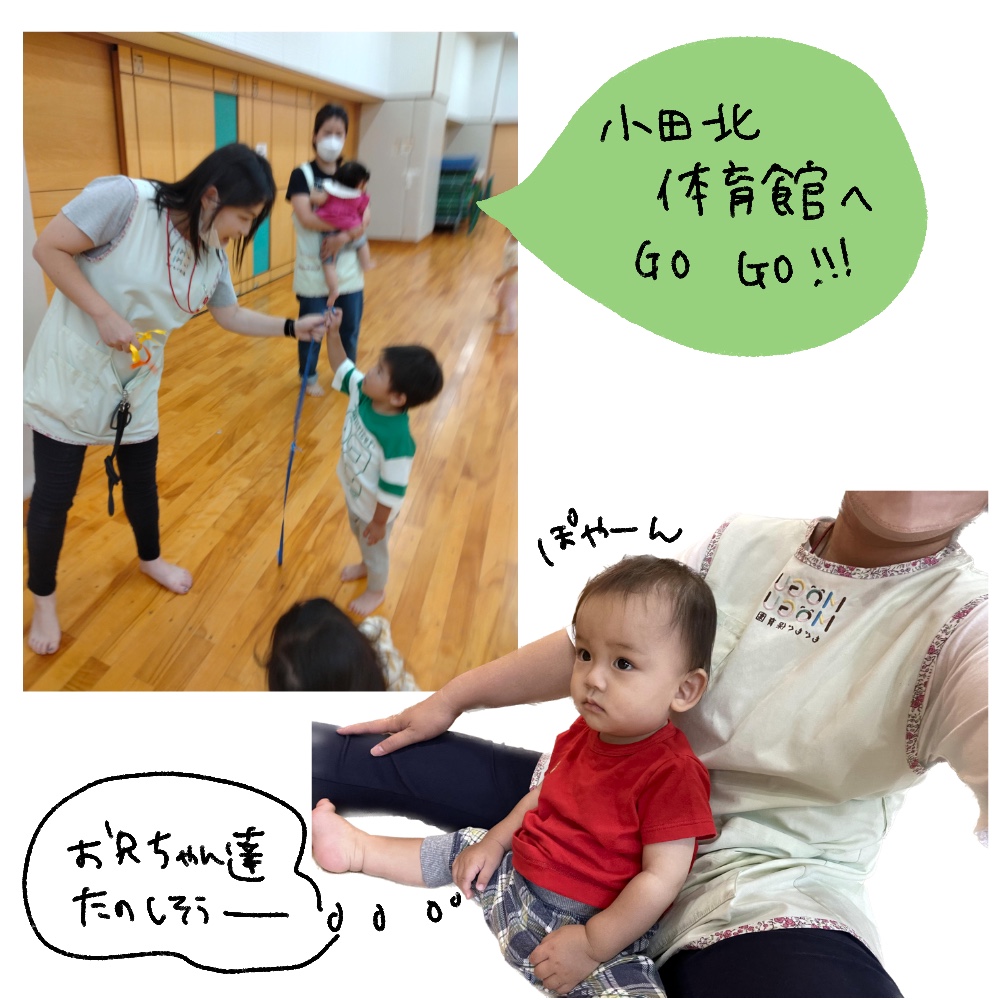 小田北体育館へ行って、しっぽ取りゲームをしました!先生のお尻に付いているしっぽが取れそうでなかなか取れず苦戦しながらも見事にゲットしていましたよ〜☆