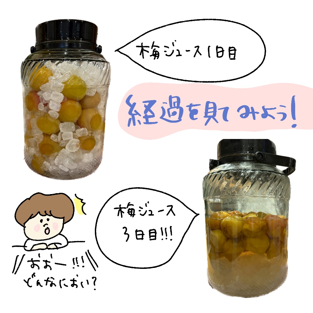 先日、作ったジュースの経過を皆で楽しんで毎日みています。