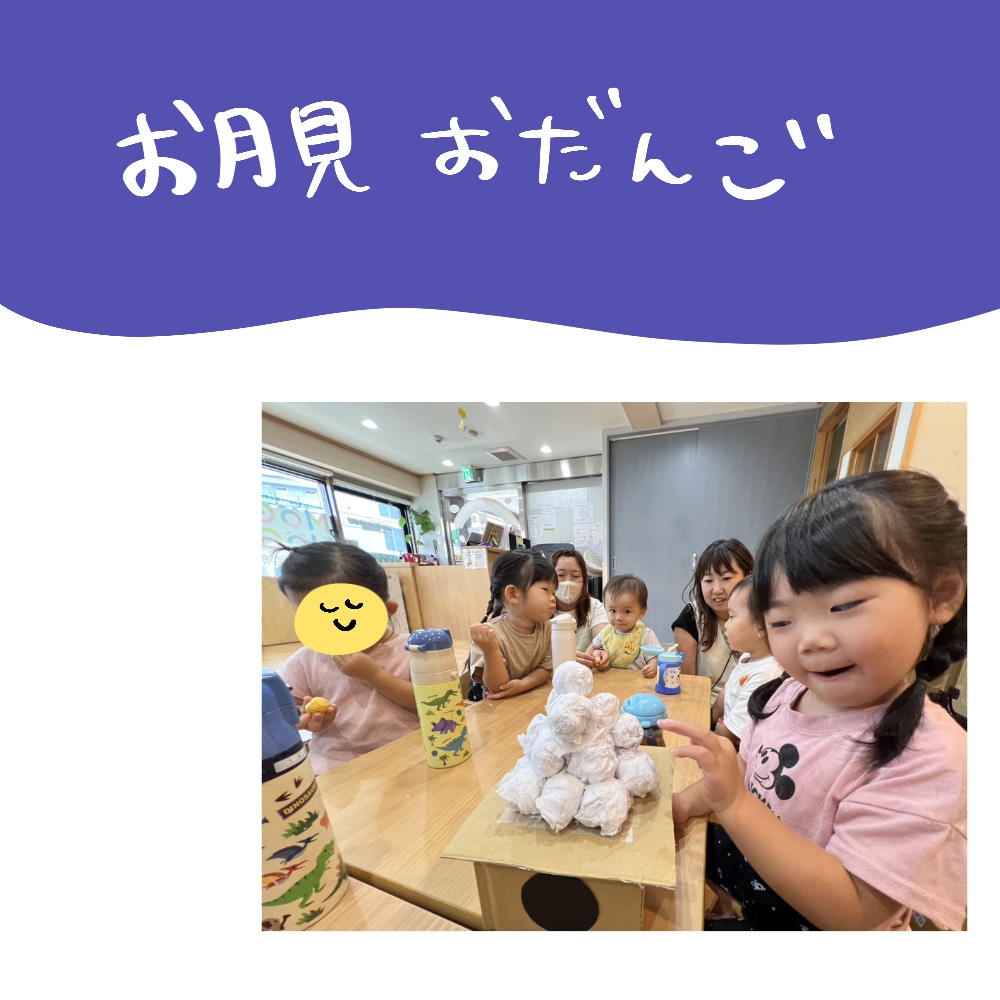 先日、十五夜なのでお月見についてお話をしました。紙でお団子をつくったのですが保育者の話を聞きながらギュッギュッと上手に丸めていました。