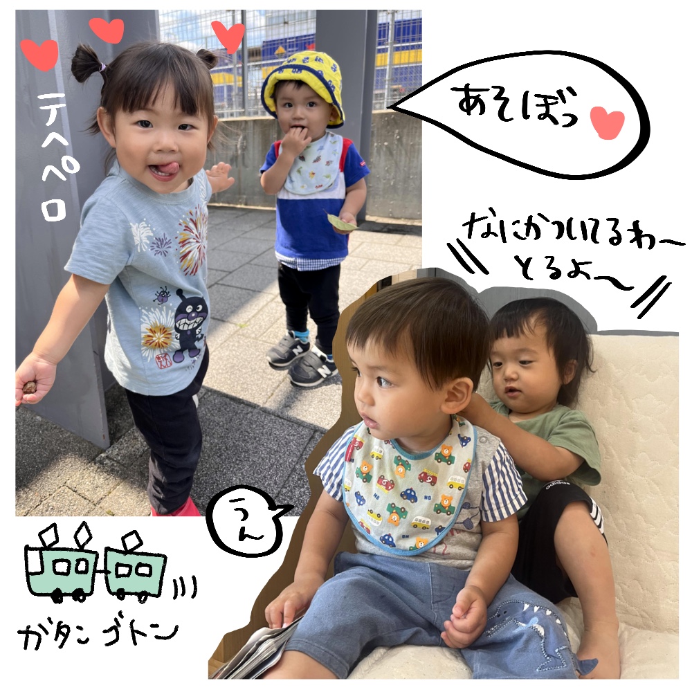 お部屋遊びでは、仲良さげに遊んだり、一人で何かに没頭して遊ぶ姿いろいろ個性が出てきてます〜