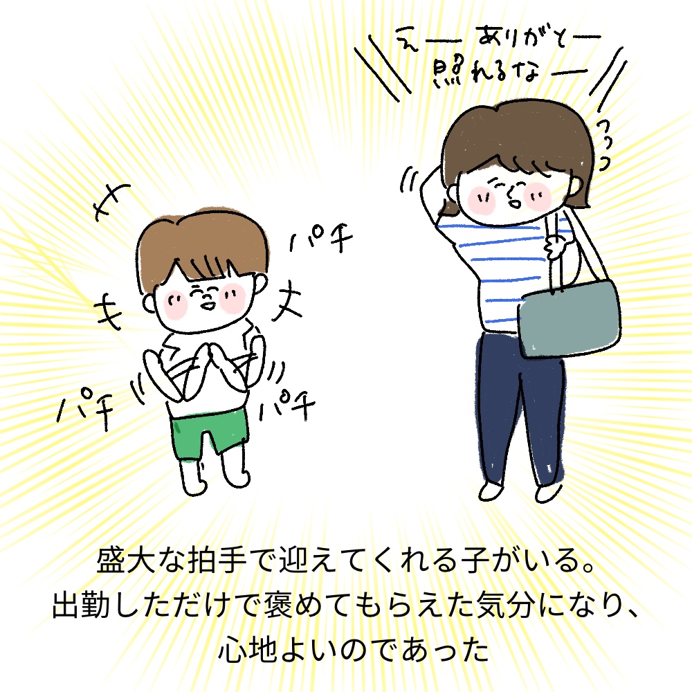 モグ漫画【拍手で…】 2024 6/26 スタッフブログ 2024年6月26日 毎朝、保育者が出勤すると… 満面の笑みと拍手で出迎えてくれる子がいます☆ 出勤しただけでこんなに大きな拍手で迎えてくれるなんて…!と、朝から嬉しい気分になります☆ 今日も有り難う! スタッフブログ よかったらシェアしてね! URLをコピーしました! 避難訓練(火災) 日常の一コマ 関連記事 避難訓練【1・17は忘れない】 2026年1月22日 英語の日 2026年1月22日 音楽の日🎹 2026年1月22日 お散歩で神社⛩️ 2026年1月22日 感染症 2026年1月8日 節分豆知識👹 2026年1月8日 羽子板と風船🎈 2026年1月8日 足の裏に🦶ペタペタ 2026年1月8日