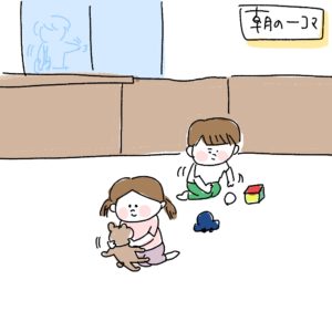 保育者が描いたイラストを元に説明している間、真剣に、イラストにもお話しにも興味を持ちつつ聞いてくれていました。
