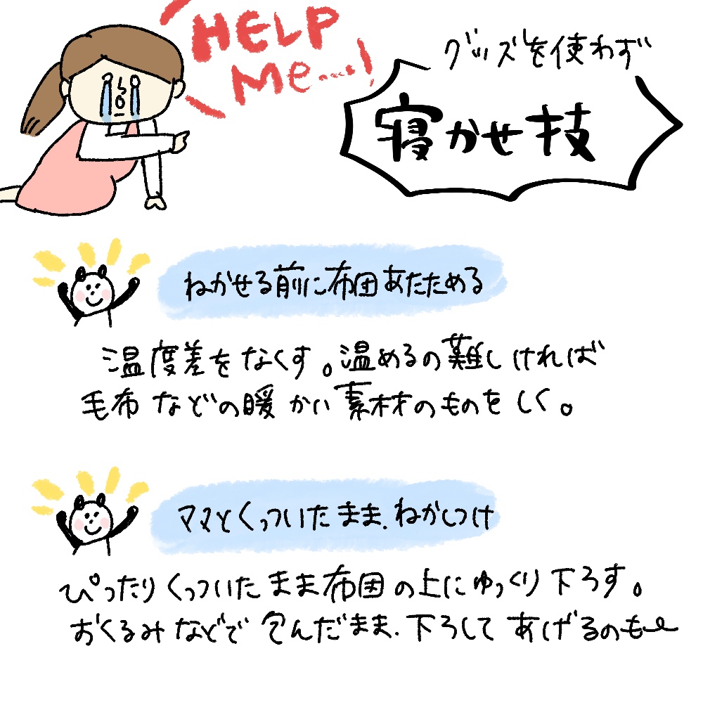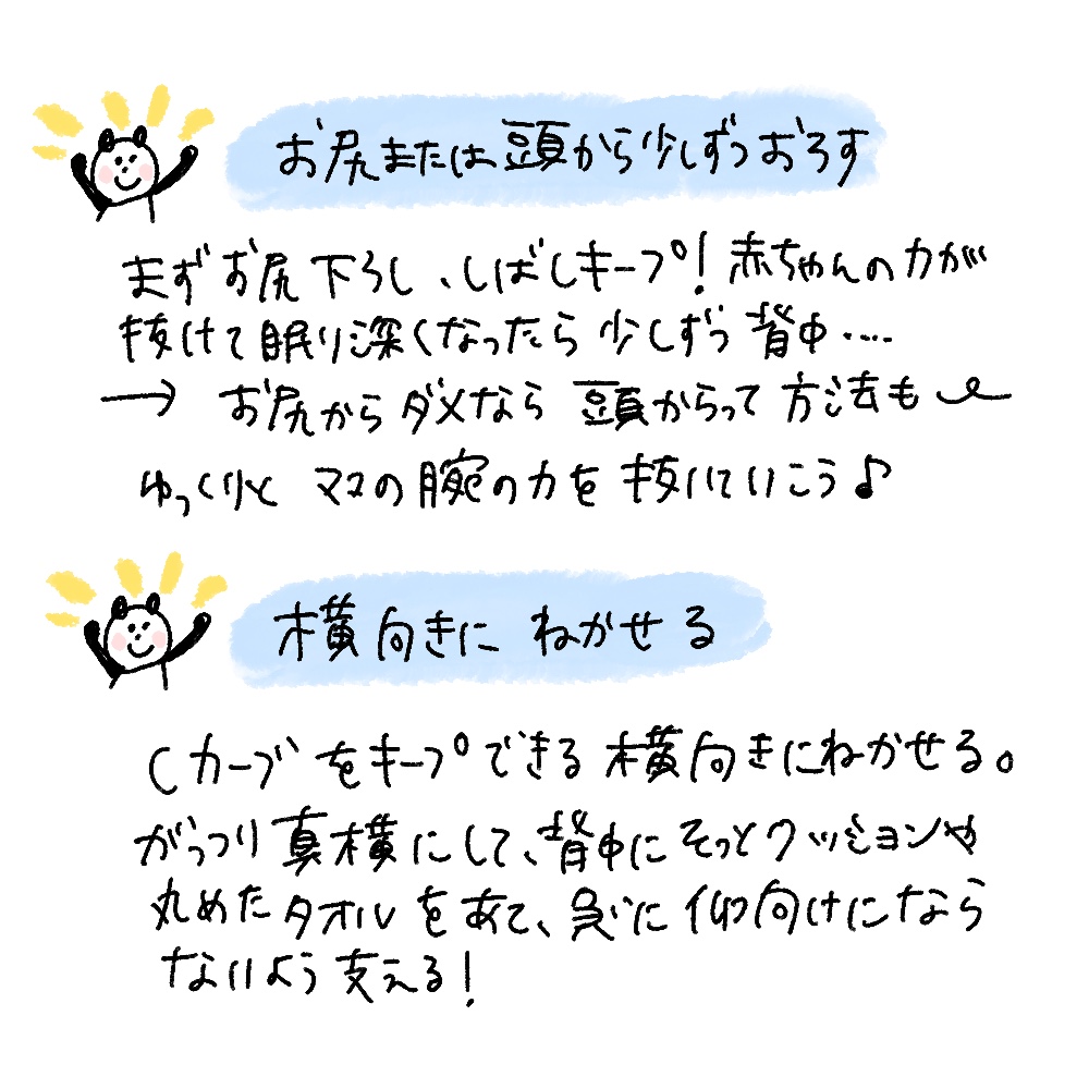 余裕のある時はママの腕の中で、またママも一緒に寝ちゃったり…も、良いかと思います☆