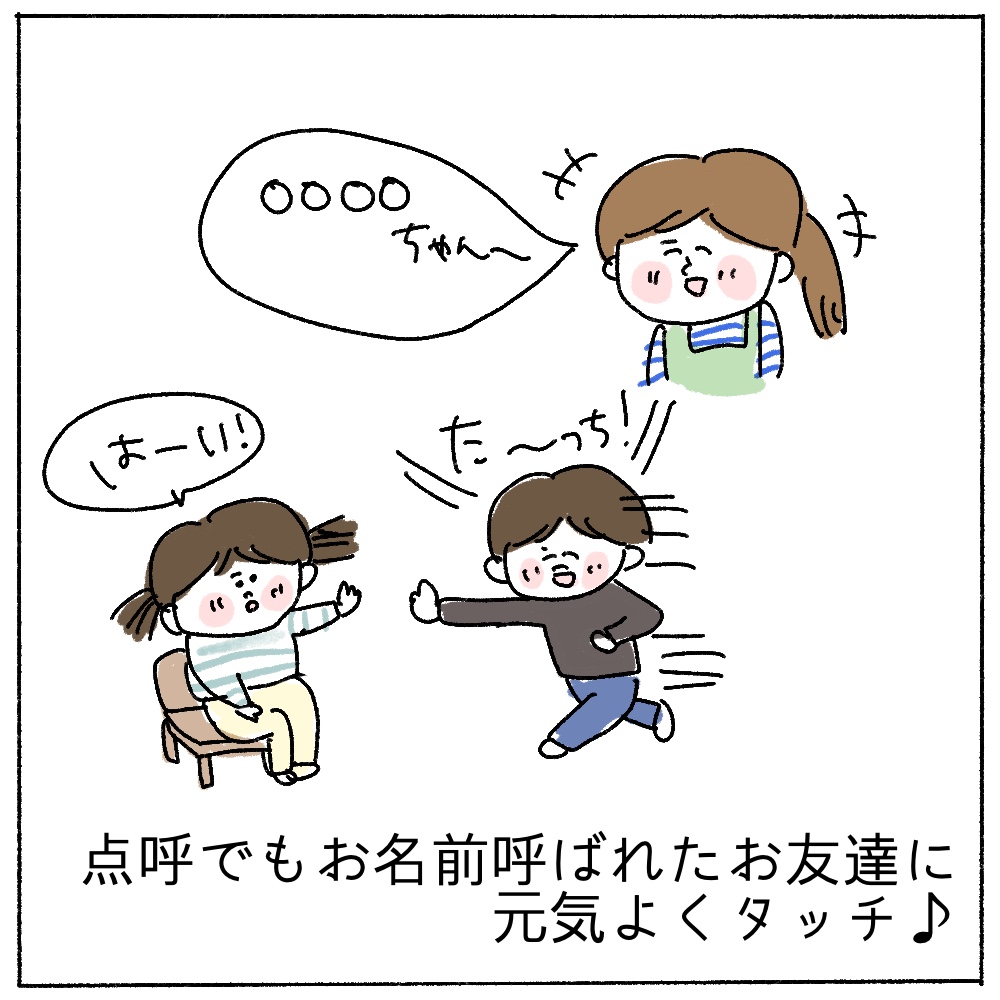 お名前呼んでの点呼の時は,いつも呼んだ後ハイタッチをするのですが、その役割までしっかりとこなしてくれていましたよ🍀