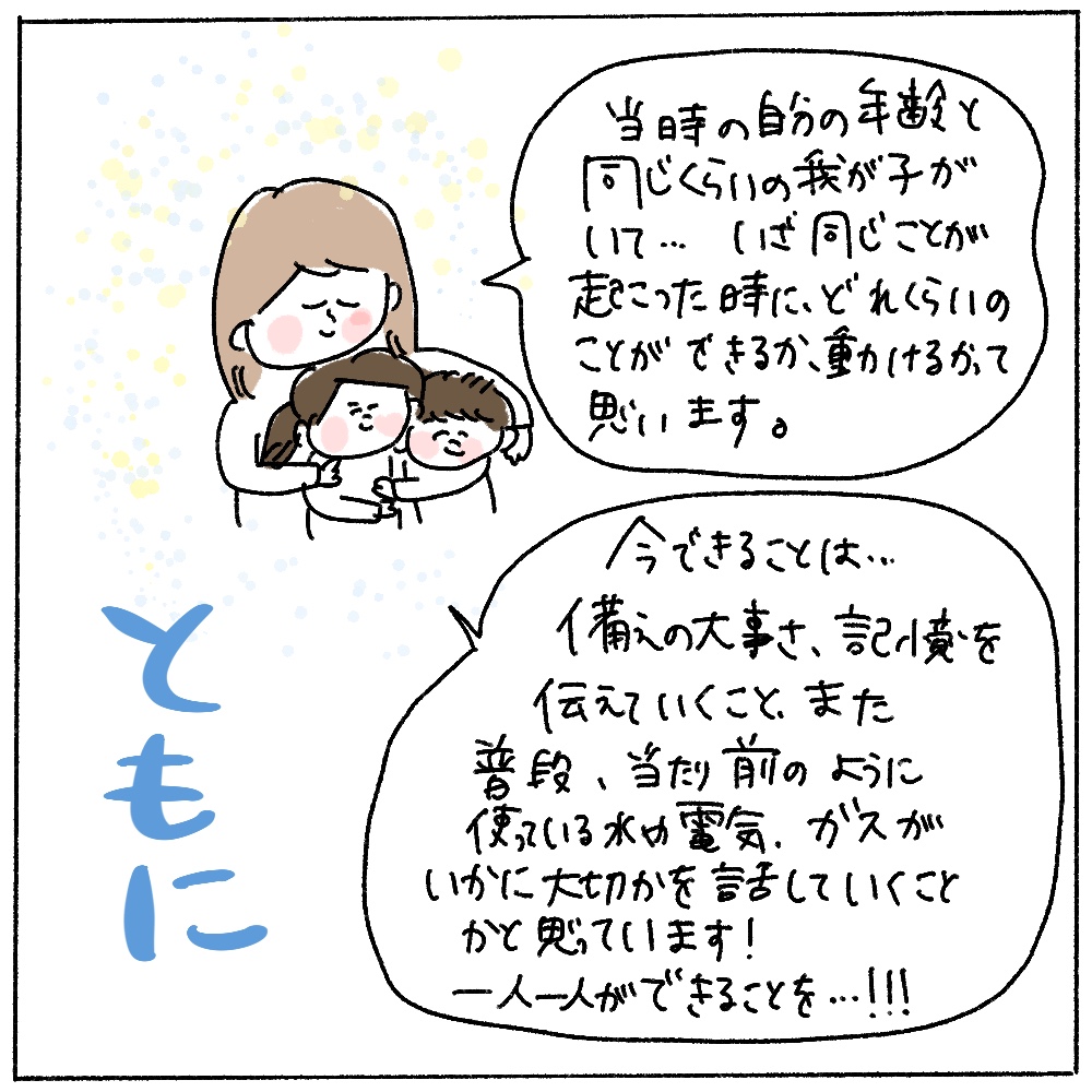 そんな私も実は被災者の一人でした。小学3年生。その時のことを忘れないためにも、漫画にまとめて毎年投稿しているので、よかったら見てやってください。また、子供達にも見せて教えてあげてください。