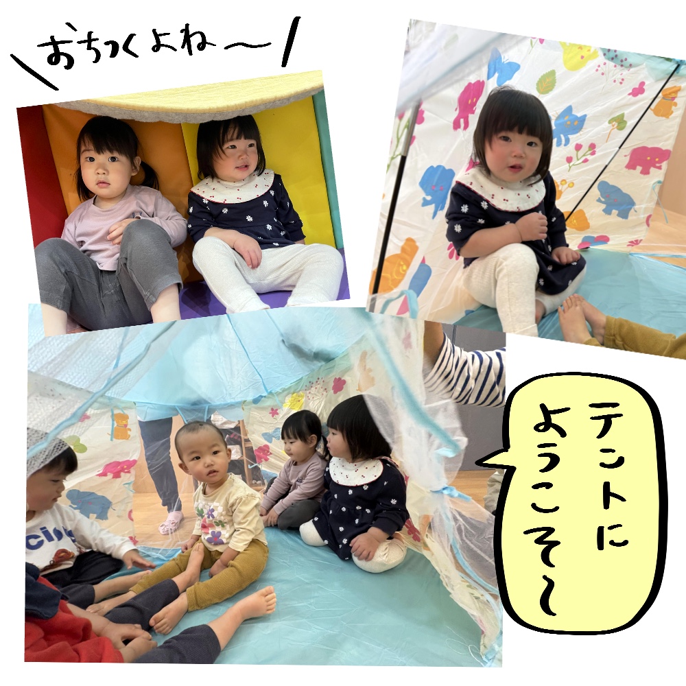 猫や小鳥のイラストがあるテントだったので、猫を見つけると「にゃーお、にゃーお」と言って猫の真似をする子もいましたよ🐈✨