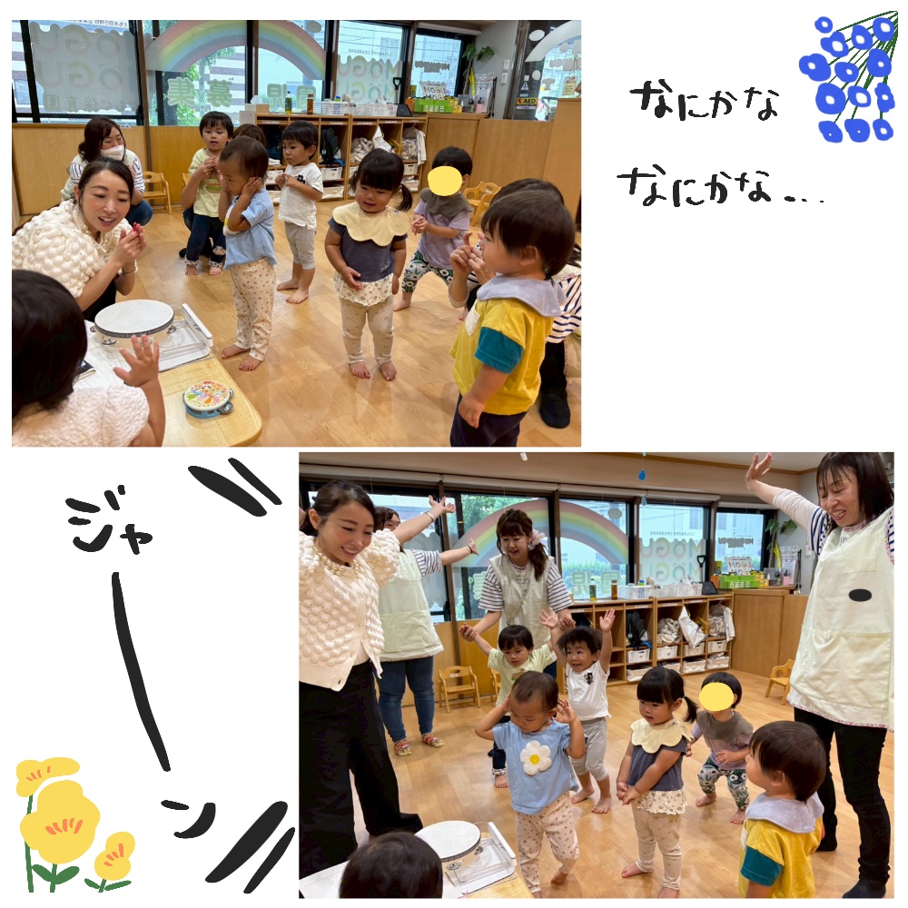 今回は音楽に合わせてぐーぱーをして音楽がとまるとチョキにする遊びもしましたよ✨グーパーの練習の後に「グーチョキパーでなにつくろう」、上手にやっていました♪