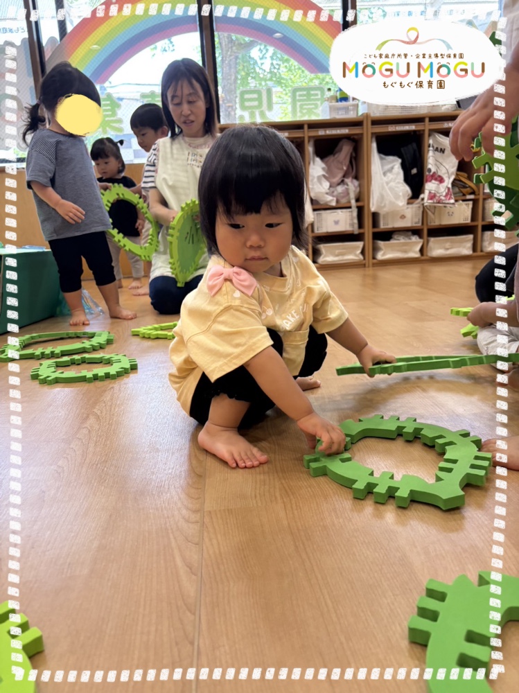マットをバラバラに外して遊び出すと首や頭にかけての遊びにする子がいたら、素敵な冠や首飾りにして王様気分でお部屋の中をぐるぐるパレード〜♪