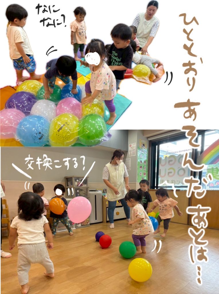 朝の会の後にバルーン遊びをしました🎈🎈🎈