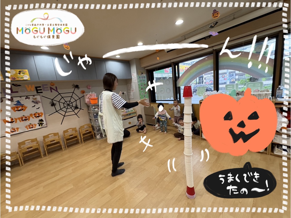 出来上がったコップの塔を見て嬉しそうに拍手していましたよ🍀