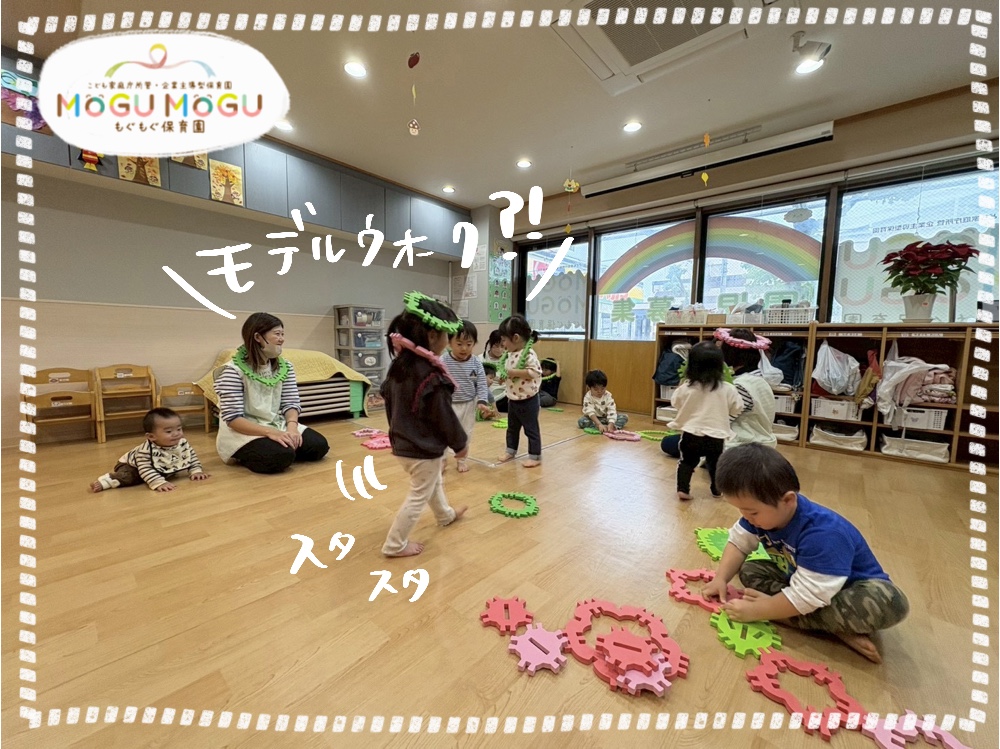 ジョイントマットを少し話して並べて、その上を落ちないように歩く遊び🚶🚶♀️