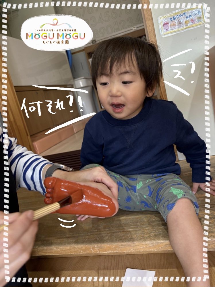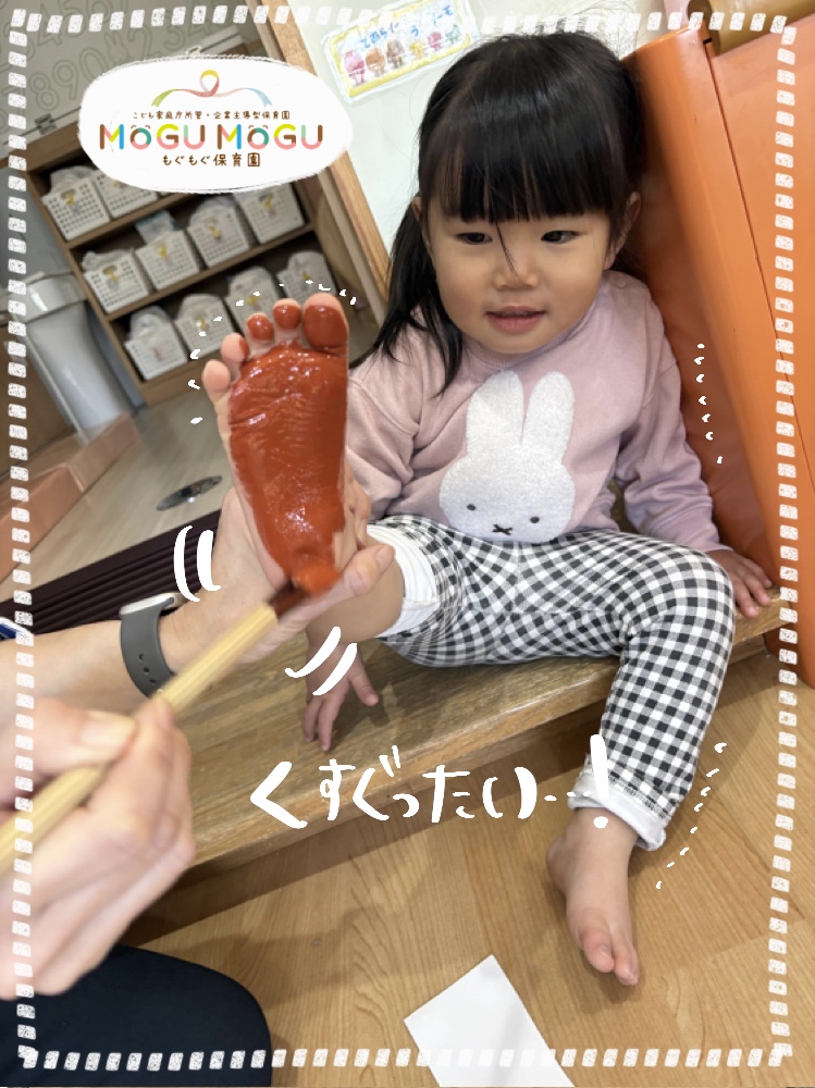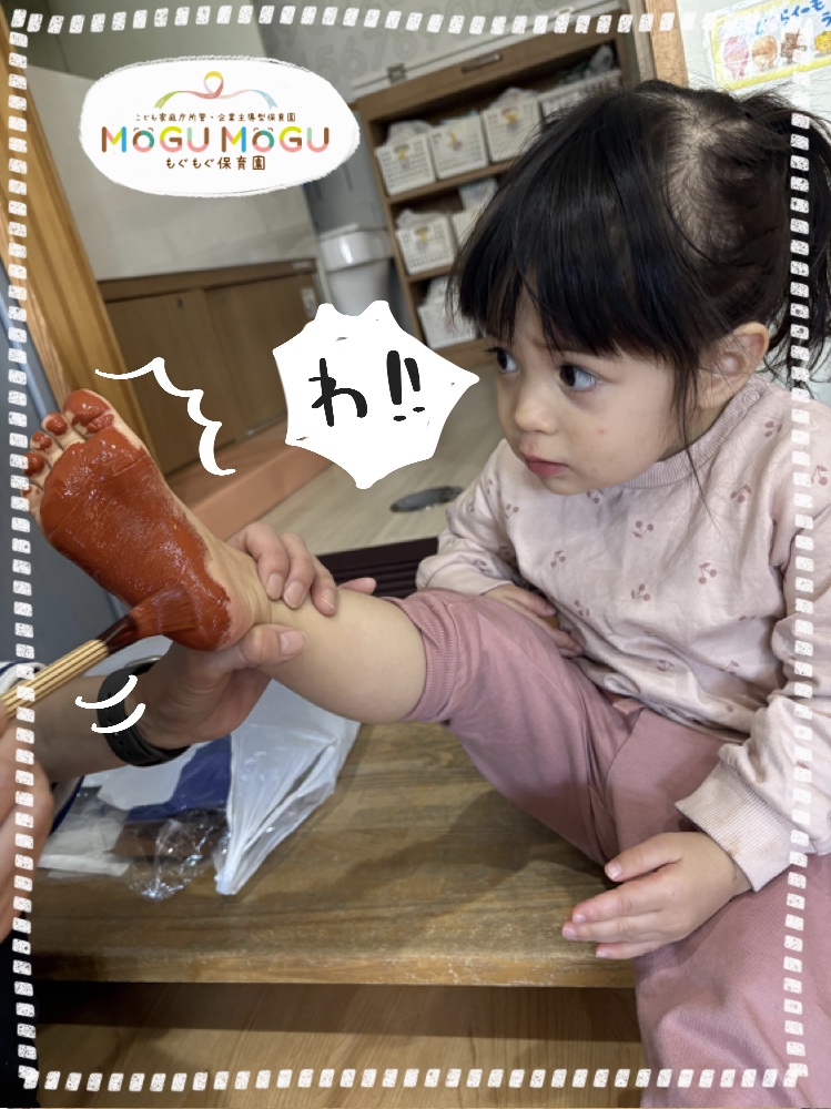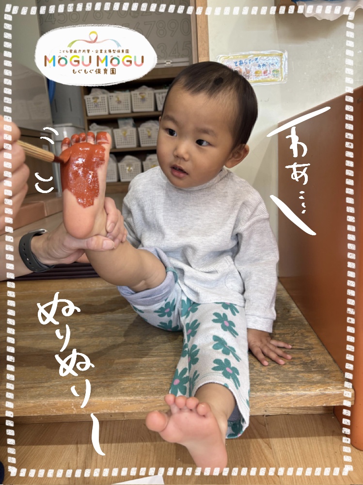 今日は足裏に絵の具でぬりぬり〜からのぺったん!