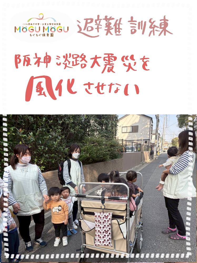 阪神淡路大震災を風化させないねらいの避難訓練をしました。