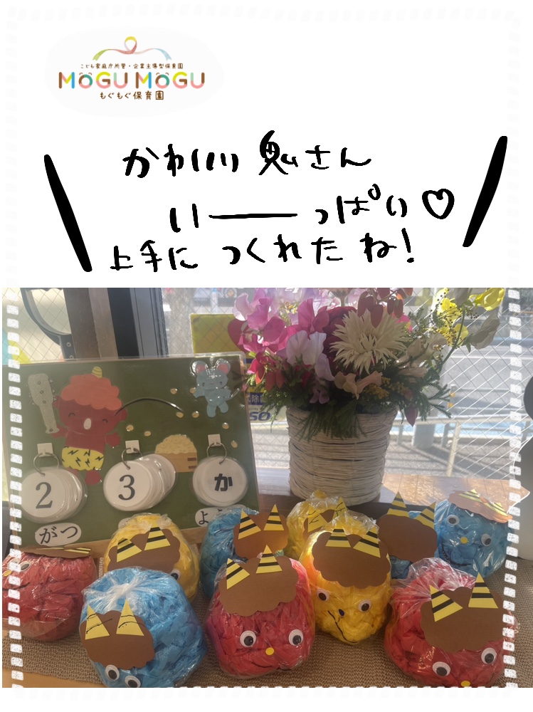 節分👹🫘 2026 2/05 スタッフブログ 2026年2月5日 保育園でも節分らしく過ごしました🍀 絵本を読んでから、皆にしってもらい… 制作、豆まき…🫘 皆一生懸命、豆まきしてくれてましたよ〜! スタッフブログ よかったらシェアしてね! URLをコピーしました! 豆まきと鬼の制作👹✨ お外遊び🍀 関連記事 お外遊び🍀 2026年2月5日 豆まきと鬼の制作👹✨ 2026年2月5日 英語遊び🔤🌈 2026年2月5日 紙コップ遊び🫗 2026年1月27日 給食🍚🍴 2026年1月27日 年始の制作🍀 2026年1月27日 キャンディ式草花遊びの日🌸 2026年1月27日 避難訓練【1・17は忘れない】 2026年1月22日