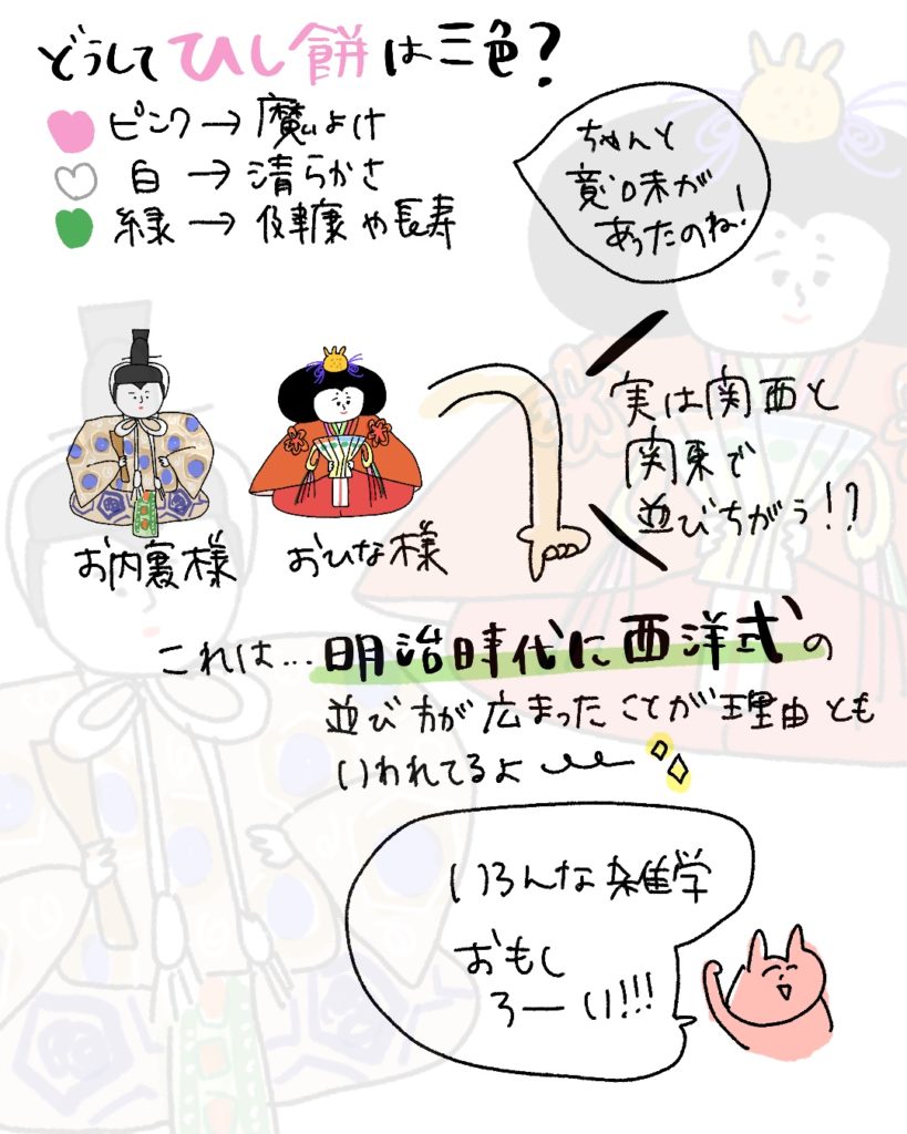 ひなまつり 2026 2/26 スタッフブログ 2026年2月26日 もうすぐしたら3月3日、雛祭ですね🌸 ちょこっと豆知識とともに、イラストでご紹介✨ スタッフブログ よかったらシェアしてね! URLをコピーしました! 今月の制作✏︎ 関連記事 今月の制作✏︎ 2026年2月26日 3月のお花🌸🌼 2026年2月26日 英語の日 2026年2月26日 避難訓練(火災🔥) 2026年2月26日 戸外遊び 2026年2月26日 じゃがいもの食育 2026年2月20日 体操🤸♂️ 2026年2月17日 お昼までの1日 2026年2月17日