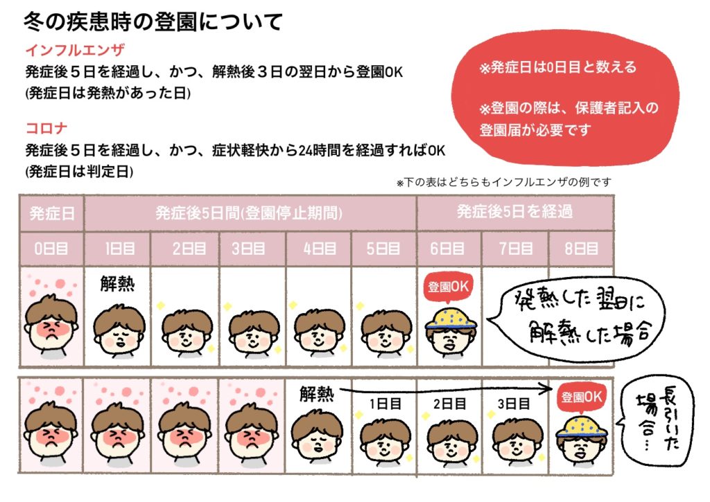 インフルエンザ・コロナ時の登園休止期間
