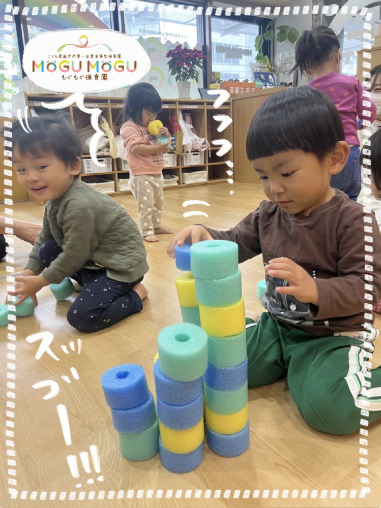 今回は100均でもよく見る… スポンジスティックをカットしたものを使って、自由に遊びました✨ 高く積んだり転がしたりして楽しんでいました🍀 そのあと、先生が伝えた色の... -
