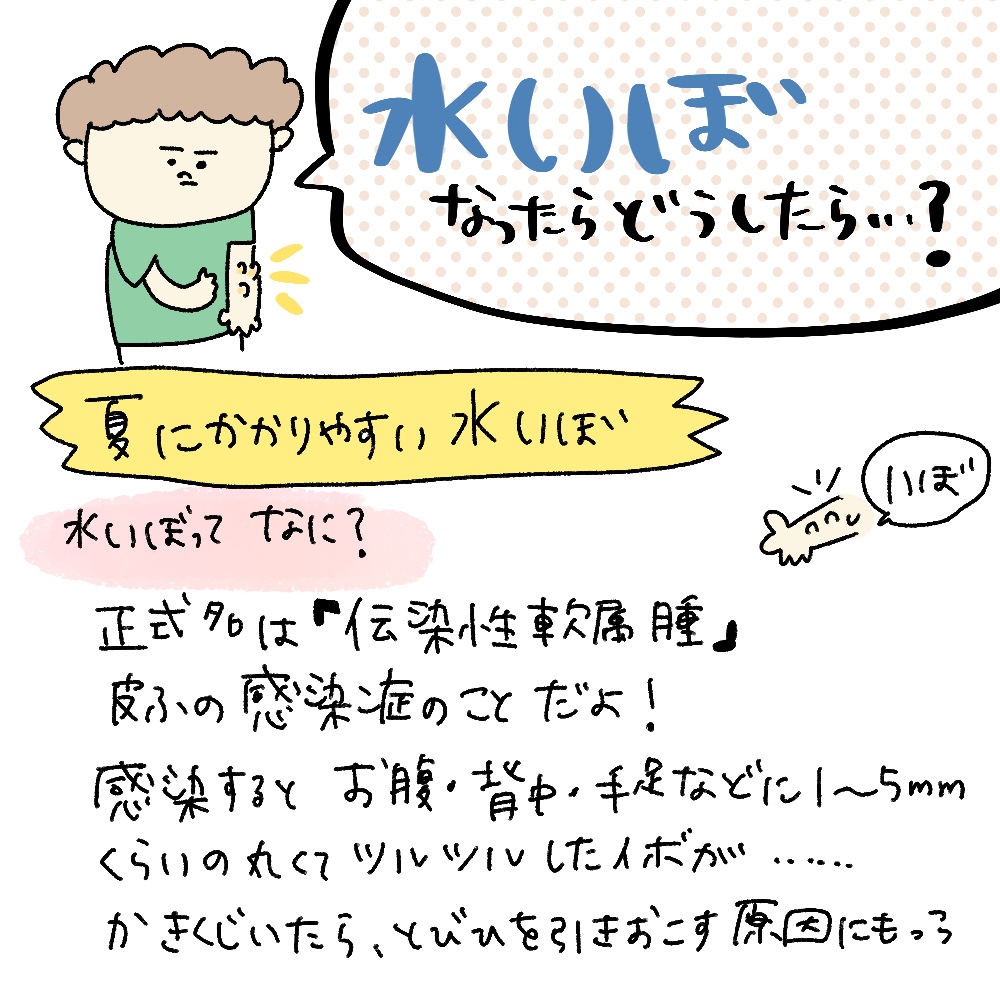 これからの季節は特に気をつけたい水いぼ。 なったらどうしたらいい?をまとめてみたので、参考に見てみてください☆ -