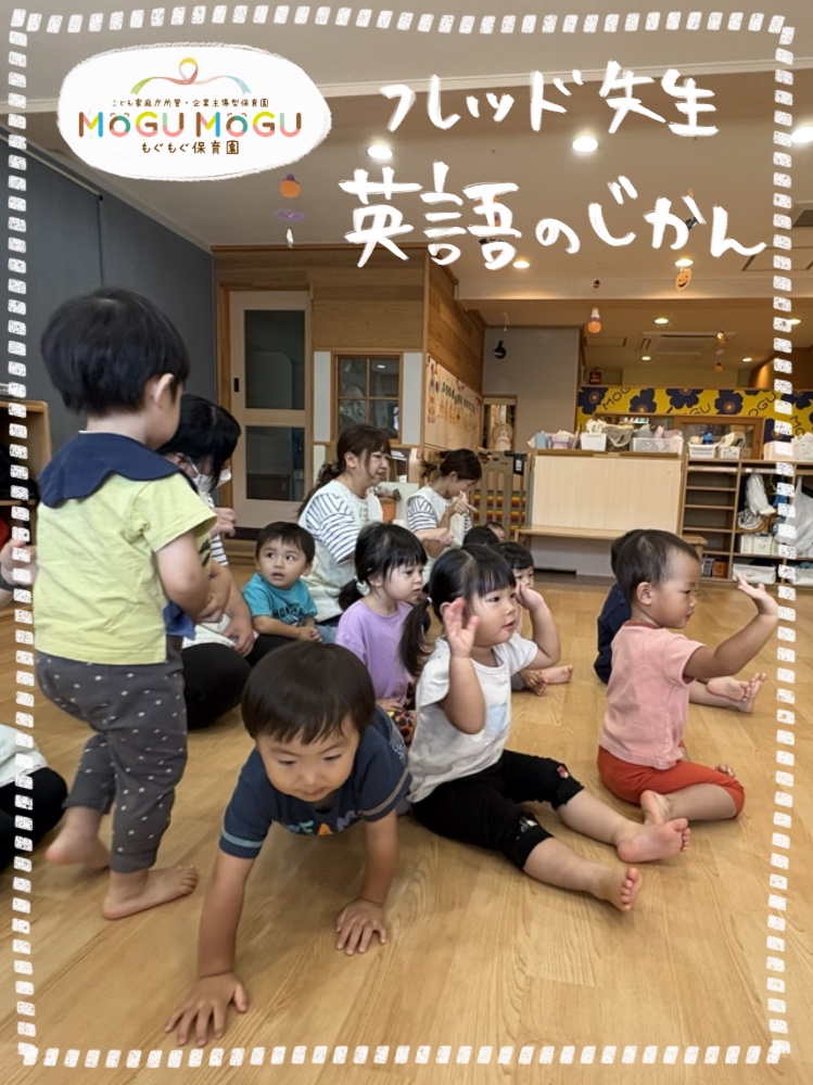 英語の日♪ フレッド先生の英語を聞きながら同じように発音してみたり、同じ動きをしてみたり✨ 英語の時間の最後にするロンドン橋で、橋が降りてきて笑顔で捕まっちゃっ... -